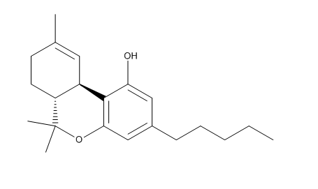 Номенклатурное название: (6aR,10aR)-6,6,9-trimethyl-3-pentyl-6a,7,8,10a-tetrahydrobenzo[c]chromen-1-ol