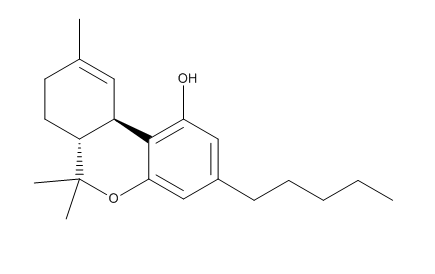 Номенклатурное название: (6aR,10aR)-6,6,9-trimethyl-3-pentyl-6a,7,8,10a-tetrahydrobenzo[c]chromen-1-ol