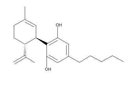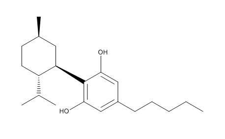 Номенклатурное название: 2-((1R,6R)-6-Isopropenyl-3-methylcyclohex-2-enyl)-5-pentylbenzene-1,3-diol