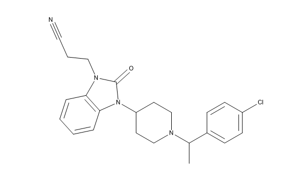 Номенклатурное название: 3-(3-(1-(1-(4-Chlorophenyl)ethyl)piperidin-4-yl)-2-oxo-2,3-dihydro-1H-benzo[d]imidazol-1-yl)propanenitrile