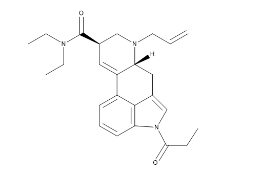 Номенклатурное название: (6aR,9R)-7-Allyl-N,N-diethyl-4-propionyl-4,6,6a,7,8,9-hexahydroindolo[4,3-fg]quinoline-9-carboxamide