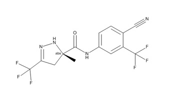 Номенклатурное название: (5S)-N-[4-Cyano-3-(trifluoromethyl)phenyl]-5-methyl-3-(trifluoromethyl)-4,5-dihydro-1H-pyrazole-5-carboxamide
